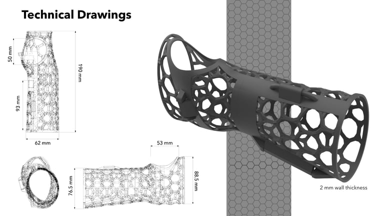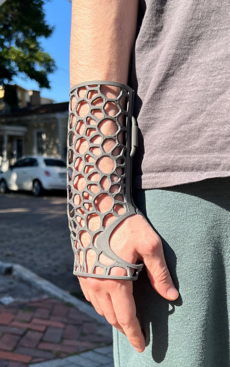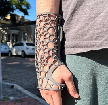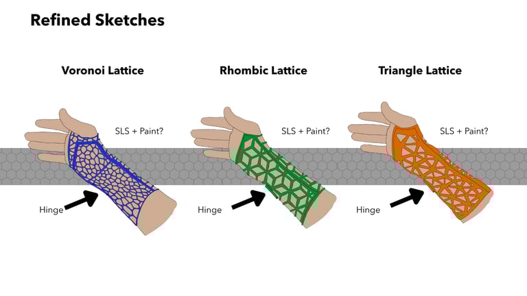 After 3D scanning my arm, I designed a lattice brace with two hinges and a latch mechanism. Since I am not yet familiar with Grasshopper (but I’ll be taking a class on the program in the Winter!), I looked for different solutions for creating the lattice structure, and found a program called Carbon3d. With a few operations I created the perfect structure for my brace and set it to print.