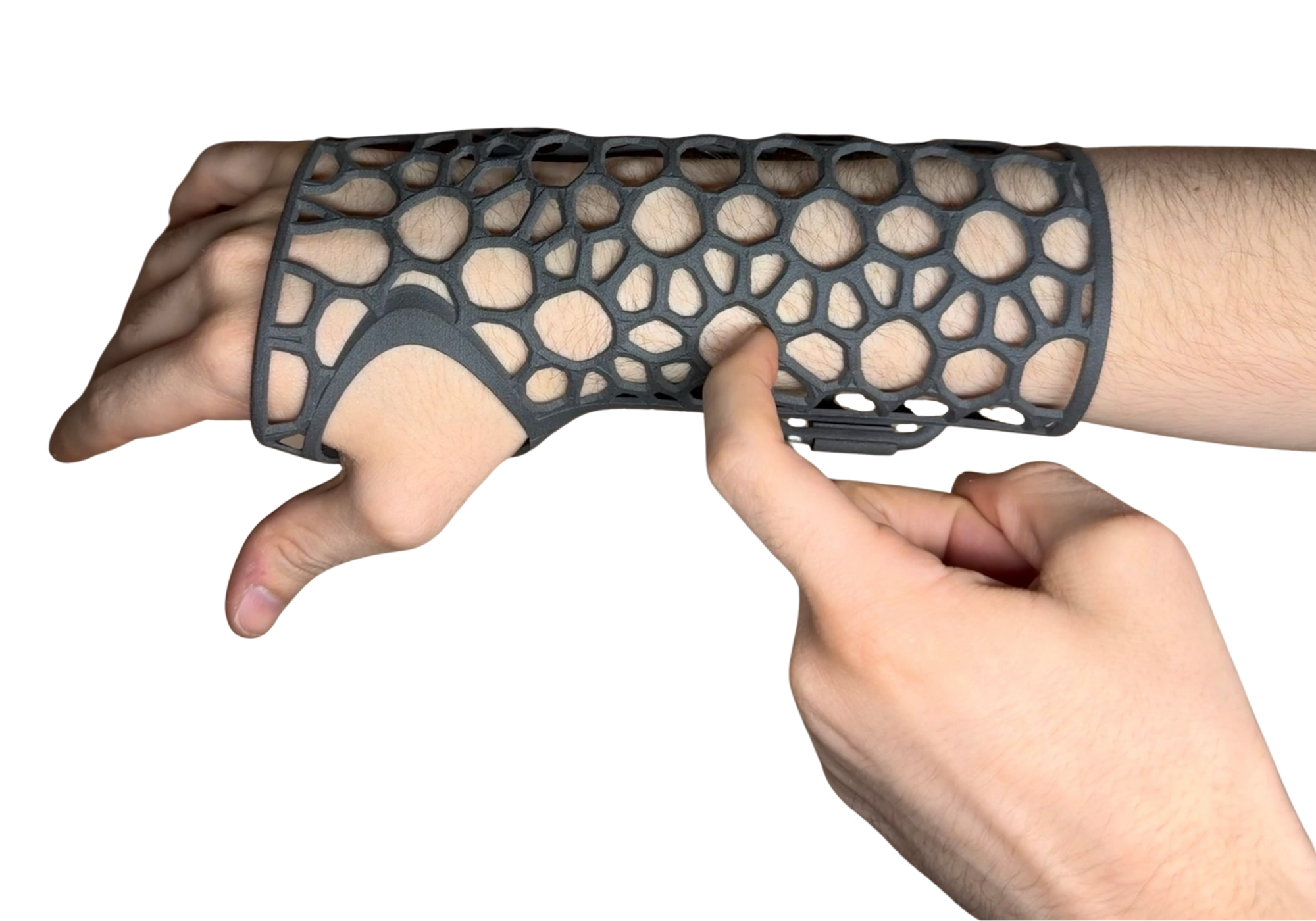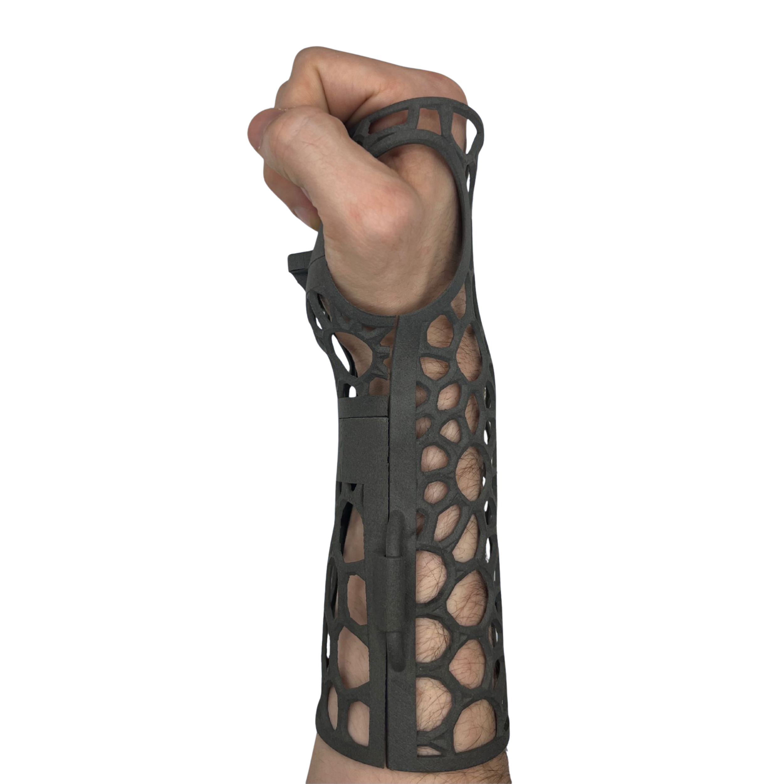 I designed a lightweight lattice forearm brace optimized for Selective Laser Sintering (SLS) using a 3D arm scan, featuring integrated hinges and a latch. The project explored the capabilities of additive manufacturing in response to the lab’s Formlabs Fuse 1, leveraging alternative lattice-generation workflows to achieve ergonomic fit and structural efficiency.