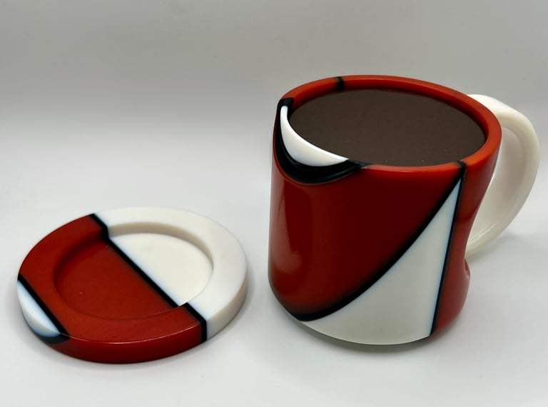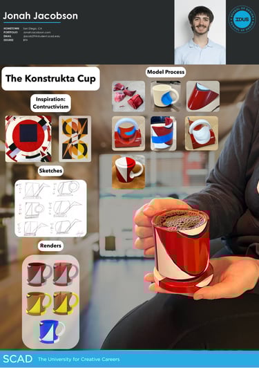 In my product form class I was tasked to create a cup and coaster based on an art movement. I chose the Russian art movement Constructivism and based the design off of El Lissitzky's work.