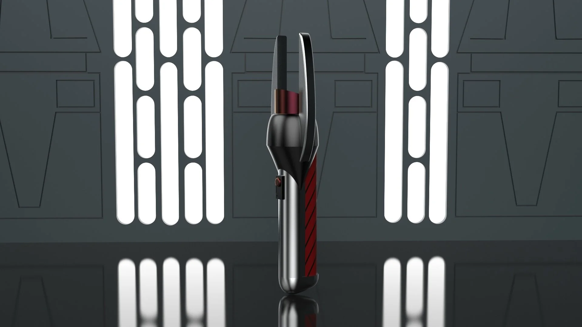 This page presents two complementary projects centered on a single product design. The first component is a technical drawing exercise focused on representing an original product concept in three-point perspective. While the lightsaber is an established object within the Star Wars universe, this design was developed independently and does not reference or replicate any existing lightsaber featured in the franchise.